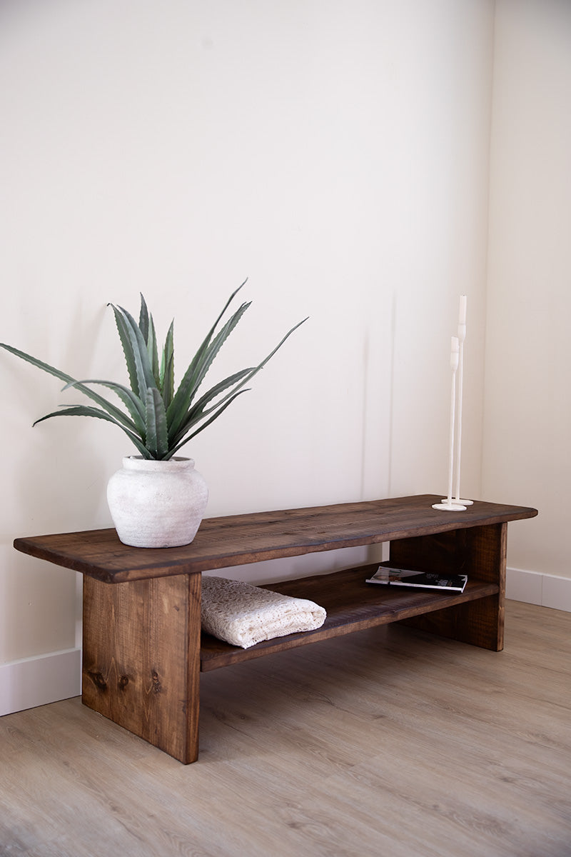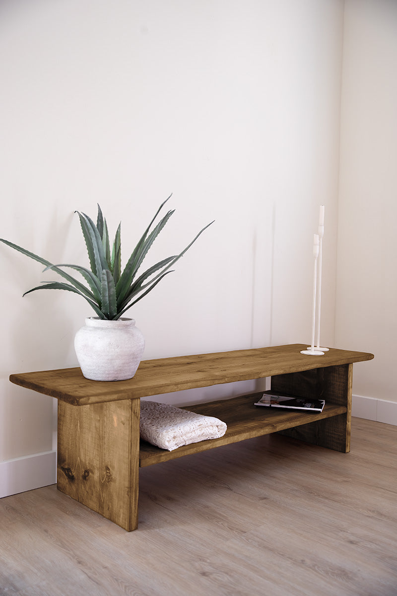 Robuust houten meubel met natuurlijke uitstraling, perfect als tv-meubel