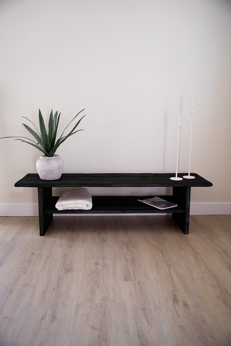 Volledig houten televisiemeubel in het zwart, handgemaakt design